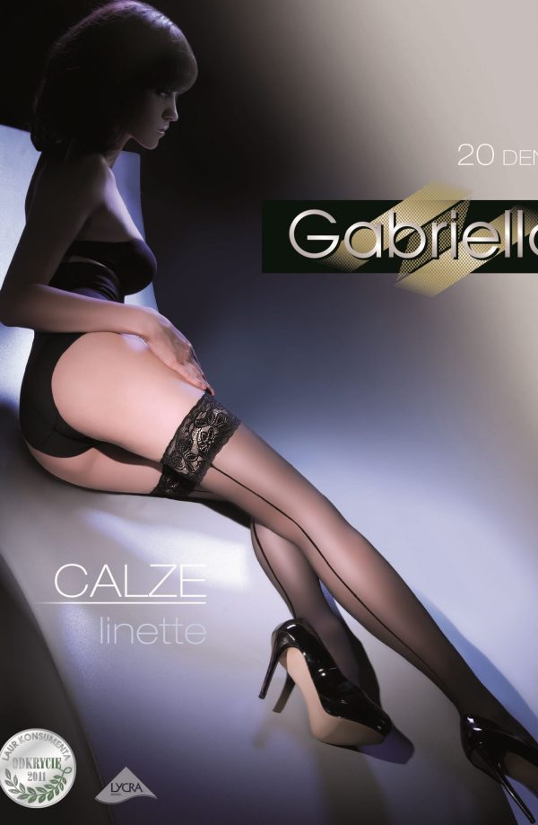 Linette is a fine delicate transparent lycra 20 Denier hold-up with back centre seam. There is a 9cm wide lace at the top with double silicone strip.