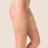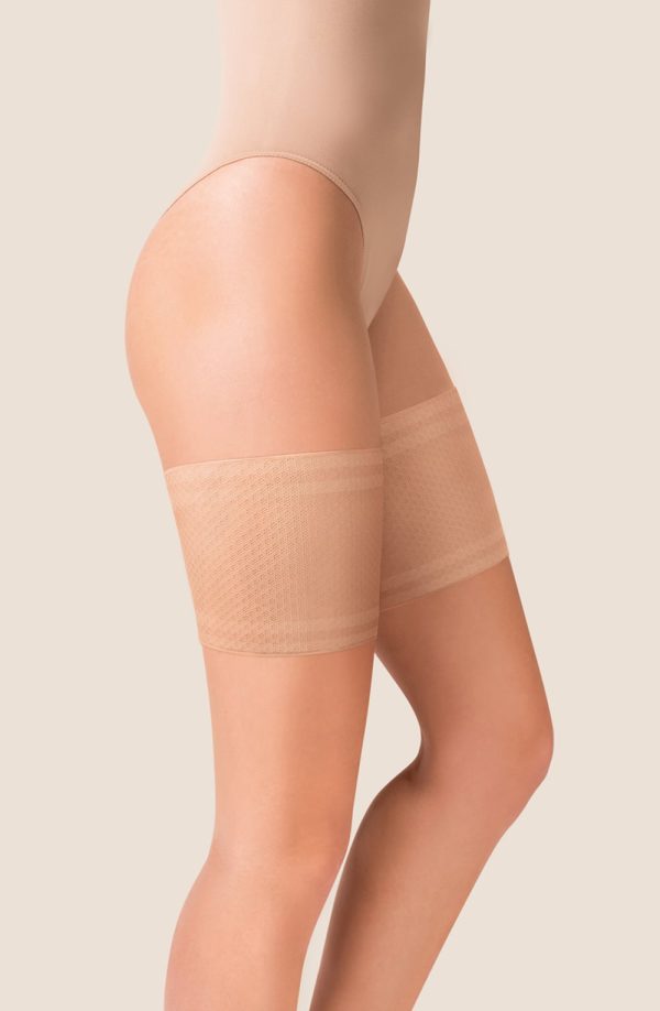 Pretty patterned mesh thigh bands made from the highest quality elastic yarns. Perfectly designed to be airy, self supporting and prevent chafing. A must have accessory for those long hot summer days. These thigh bands arrive in Gabriella packaging. PLEASE NOTE: This product cannot be sold or distributed to the United States of America