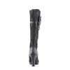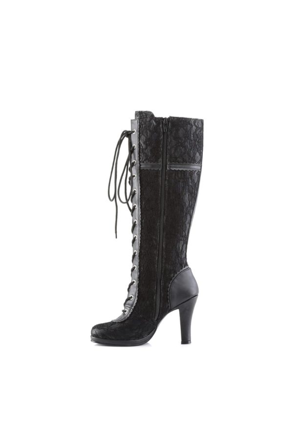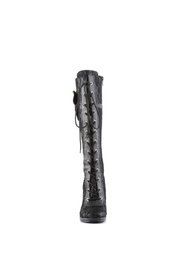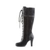 3 3/4″” (9.5cm) Heel, 1/2″” (1.3cm) Platform Goth Lolita Lace Up Knee Boot with Bow Mini Platform, Full Inner Size Zip Closure