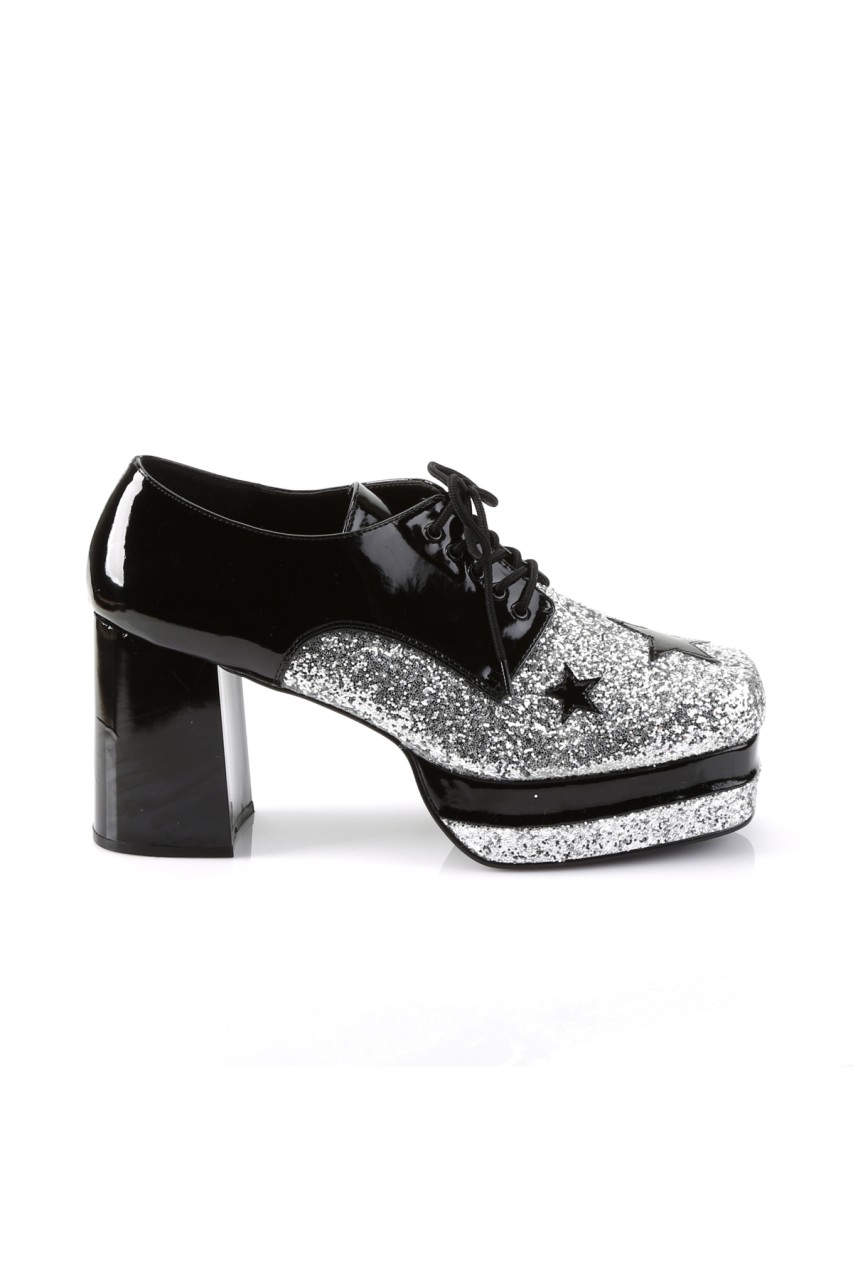 3 1/2″” (8.9cm) Heel, 1 1/2″” (3.8cm) Stacked Platform Lace Up Black Glitter Oxford