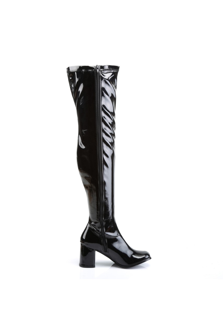 3″” (7.6cm) Block Heel Gogo Over-the-Knee Boot, Stretch Patent, Full-Length Inner Side Zip Closure