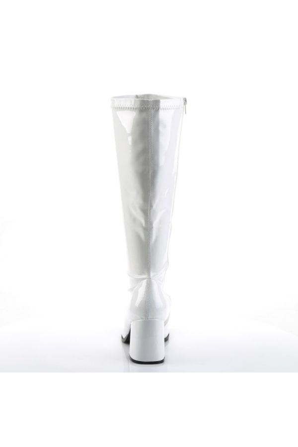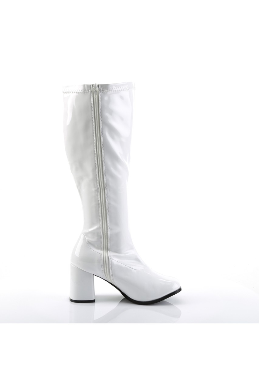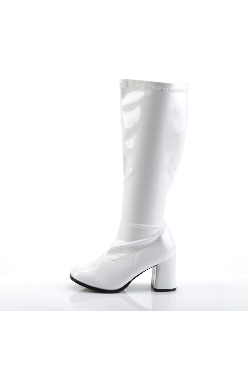 3″” (7.6cm) Block Heel Stretch Patent Gogo Plus Size Boot, Full Inner Side Zip Closure