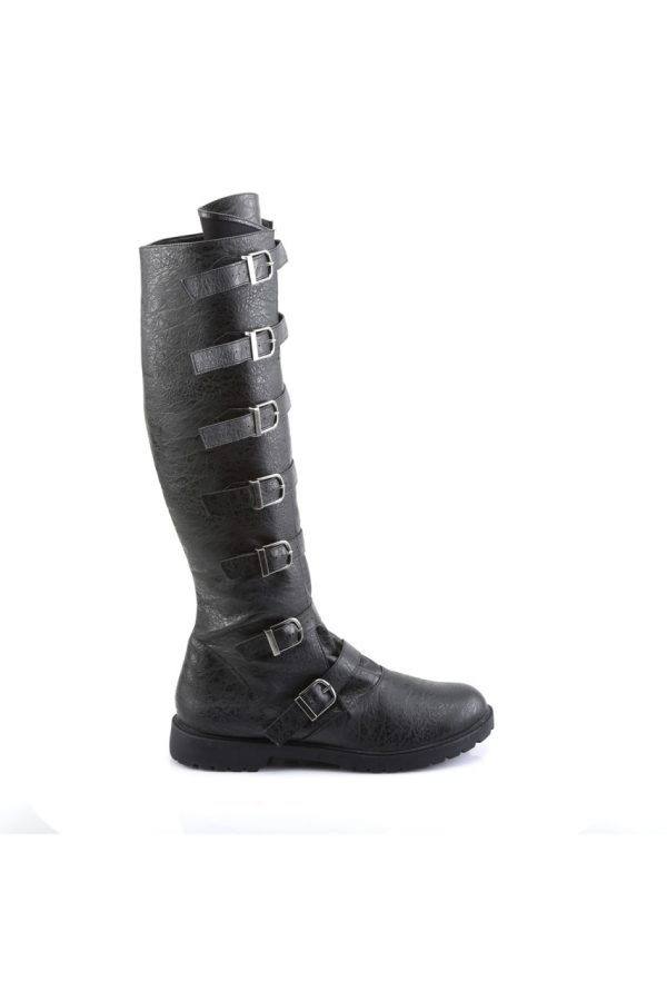 1 1/2″” (3.8cm) Flat Heel Men’s Pull-on Multi-Buckled Strap Knee High Boot w/ Expandable Shaft