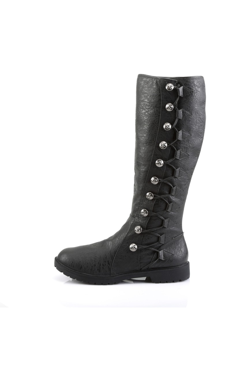 1 1/2″” (3.8cm) Flat Heel Men’s Knee High Boot w/ Button Lace-up & Split Design, Full Inner Zip Closure