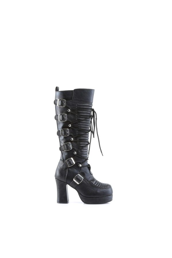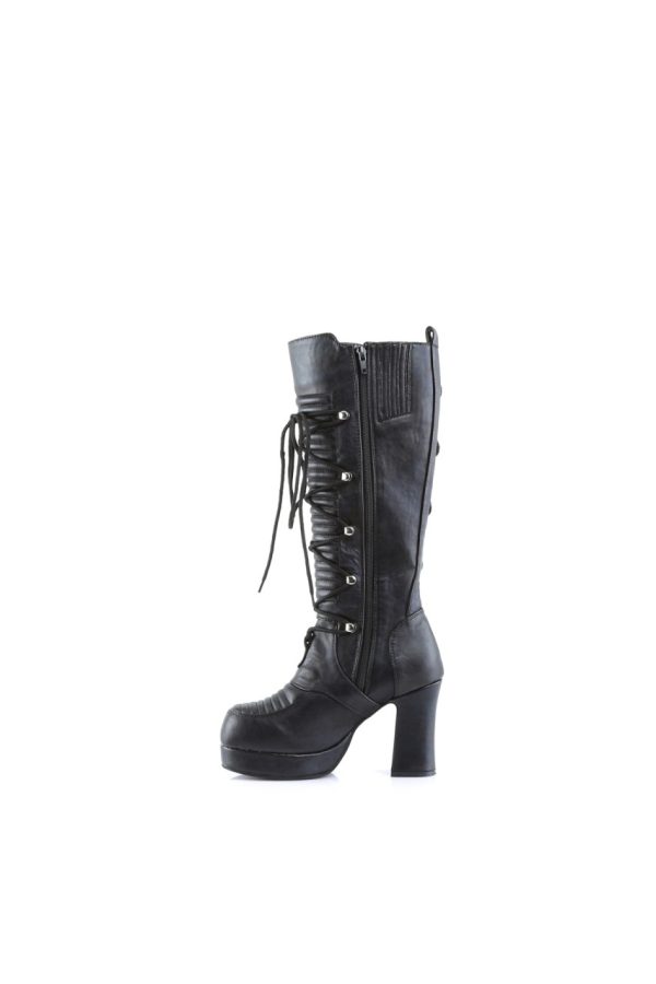 3 3/4″” (9.5cm) Heel, 1 1/4″” (3.2cm) Platform Goth Punk Lolita Lace Up Front Knee Boot, Full Inner Size Zip Closure