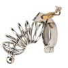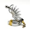 For advanced players only, the Impound Corkscrew offers another level of submission, restriction and invasion of privacy with an unforgiving and exquisite metal urethra-plug. The penis plug can be inserted through a secure hole at the tip of the device and it can stop any escape attempts from the cage. The curvature of the cage follows the natural position of the flaccid penis and the base ring comes in three different sizes for a customised fit, so extended wear can be as comfortable as desired. A padlock with a set of three keys is also included for even more safety and security. Impound has it and will contain it all – lock, stock, and barrel.
