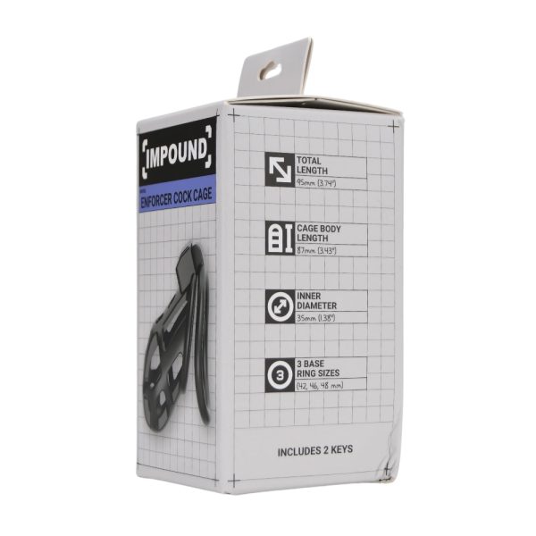 Experience next-level control with the Impound Enforcer Cock Cage – a discreet, ultra-secure chastity device designed for both beginners and experienced wearers. With a more compact profile and breathable, open-frame design, the Enforcer offers comfort and hygiene for longer wear while still keeping you locked firmly in place. Featuring three base ring sizes and a snug 35mm inner diameter, it provides a customizable fit. Crafted from durable ABS with a touch of metal, this lightweight 34.5g cage is built for restraint that doesn’t compromise on comfort. Features: