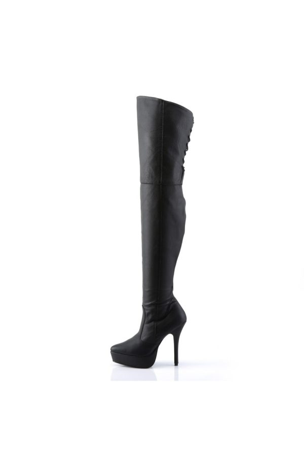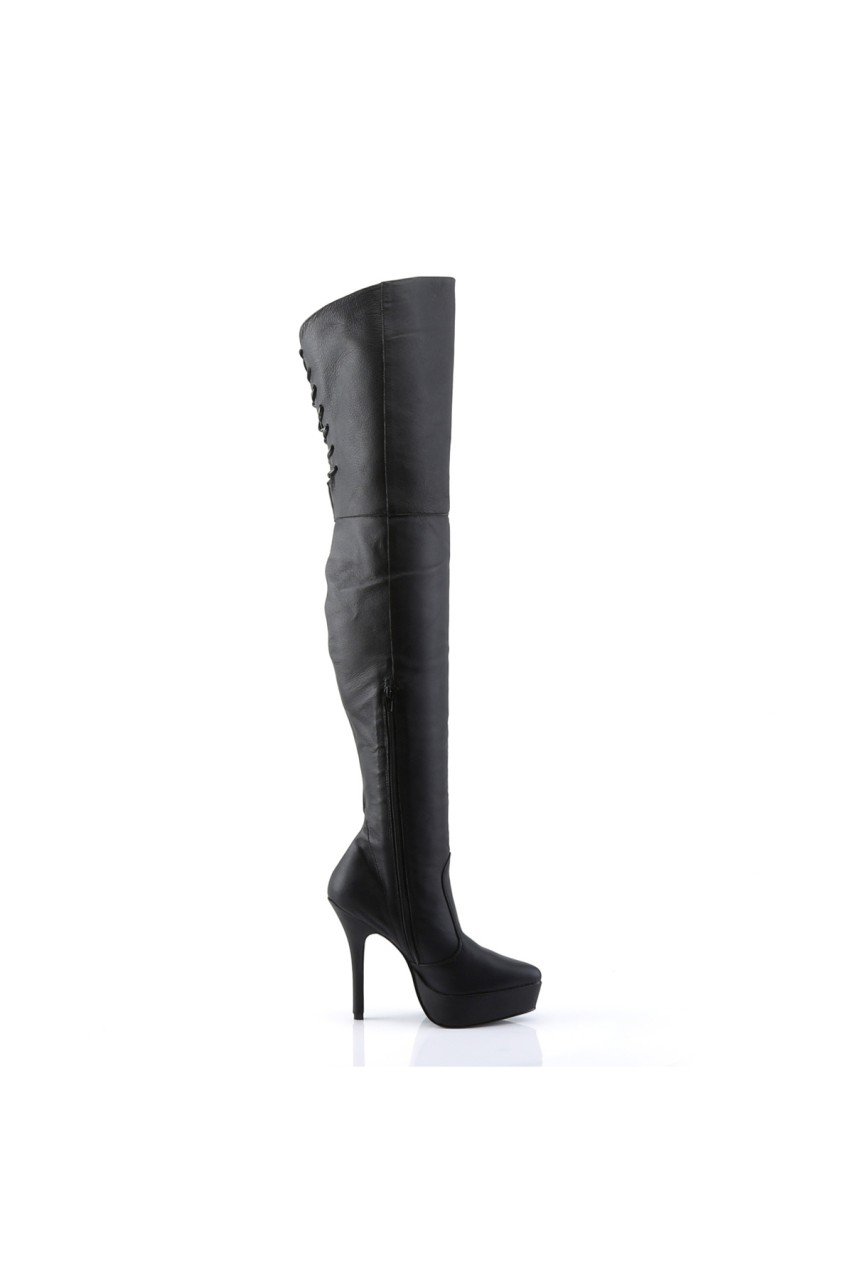 5 1/4″” (13.3cm) Heel, 1 1/4″” (3.2cm) Platform Thigh Boot, Full Inner Side Zip Closure
