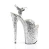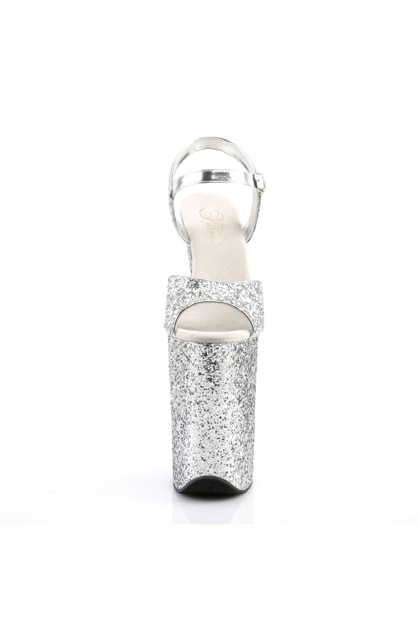 9″” (230mm) Heel, 5 1/4″” (135mm) Platform Glitter Ankle Strap Sandal
