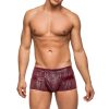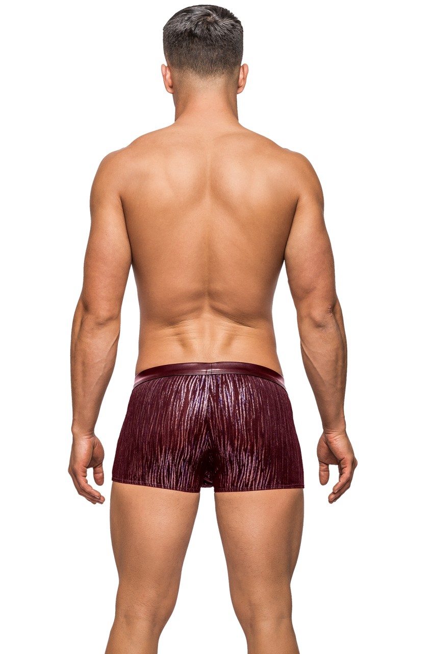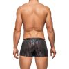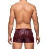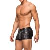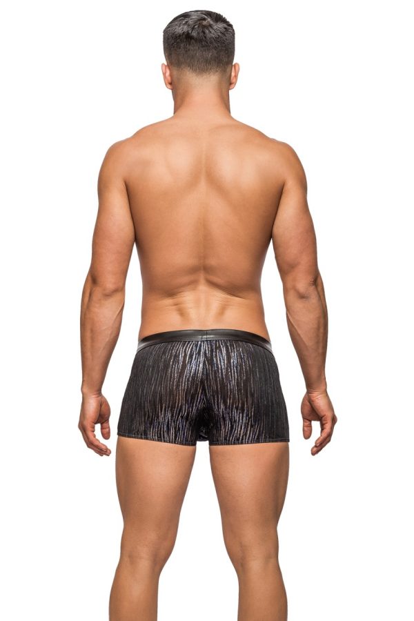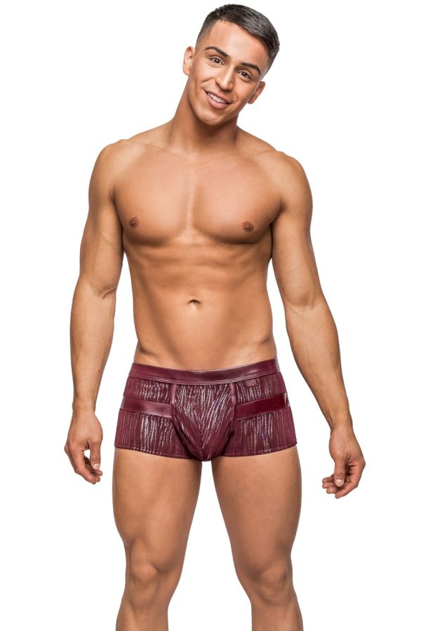 Insert short features enhancer pouch, decorative, supple faux leather front inserts and waistband. Low cut waist, high cut legs. Logo ‘d label.