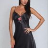 Dakota is the most captivating nightdress made from delicate satin. The cups slightly crinkle at the bottom and between them is a hand-made rich embroidered floral design. On the back upper part of the nightdress is a beautiful insert made from semi-transparent mesh with embroidered flowers. Includes thin adjustable shoulder straps. Finishing touch is a cut at the bottom of the nightdress with embroidered flowers. Dakota arrives packaged in her own Irall box with lovely matching tissue paper.