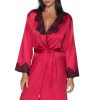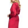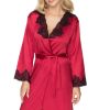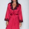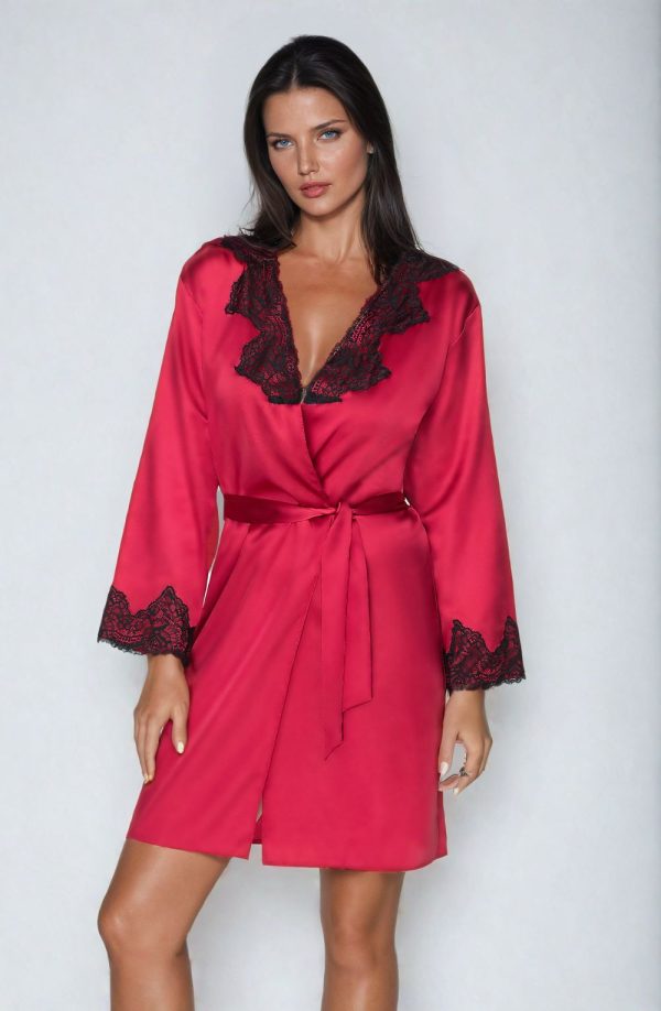 This pretty short style satin dressing gown looks stunning in a lovely rich burgundy colour. Deep black lace decorates the neck and sleeves. This item arrives packaged in an Irall box making it ideal as a gift or treat. The Juniper collection comprises dressing gowns and matching nightdresses in burgundy or cream. Please see the ‘Related Products’ tab below for further details.
