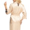 Mallory is an elegant dressing gown made from high-quality satin. The sleeves and the back of the robe are decorated with beautiful v shaped embroidery with the effect of “tattoo”. The gown is tied at the waist with a matching belt. This item arrives packaged in a lovely Irall box. Matching items are available separately, please see related products.