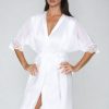 An original bathrobe in which the satin is combined with transparent chiffon giving it an elegant style. Front back and belt are made of the highest quality satin. The sides and kimono sleeves are sewn from transparent chiffon. The sleeves are finished with beautiful lace. The length of the dressing gown measured from the collar to the hem is 93 cm. Arrives packaged in an Irall box making it ideal as a gift or treat. The Sharon collection comprises Nightdress or Dressing gown in a choice of colours. Please see the ‘related products tab’ for these further styles.