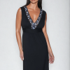 A sensual and elegant nightdress made of pleasant soft to the touch black viscose. The neckline is finished with beautiful black and navy blue embroidery in a floral pattern. The bust is perfectly supported thanks to a special insert which further emphasizes its shape. Small creases at the front of the shirt perfectly cover up imperfections of the figure. The length of the product – up to the knees with a height of 164 cm. This product arrives packaged in tissue paper and an Irall box. Also available in plus size 2XL- 5XL, please see related products.