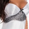 Winter is the most enchantable romantic nightdress made from delicate satin. Contrasting effective black lace perfectly emphasises the breasts right beneath the chest. There’s also slight crinkly at the bottom of the cups. A delicate little bow in black also sits between the cups. A contrasting black thread has been used at the hem. Includes thin adjustable shoulder straps. Finishing touch is a cut at the bottom of the nightdress with embroidered flowers. Winter arrives packaged in her own Irall box with lovely matching tissue paper.