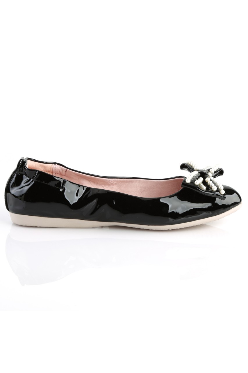 Pointed Toe Foldable Ballet Flats with Pearl Embellished Bow Detail At Toe