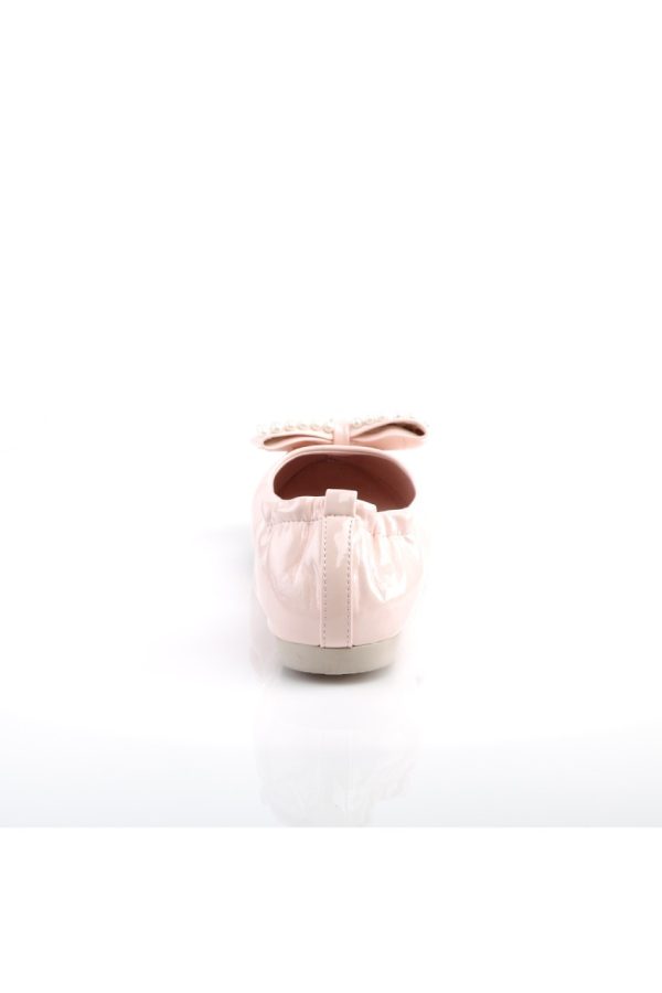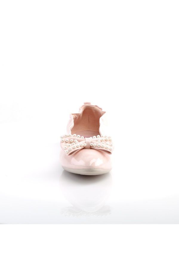 Pointed Toe Foldable Ballet Flats with Pearl Embellished Bow Detail At Toe