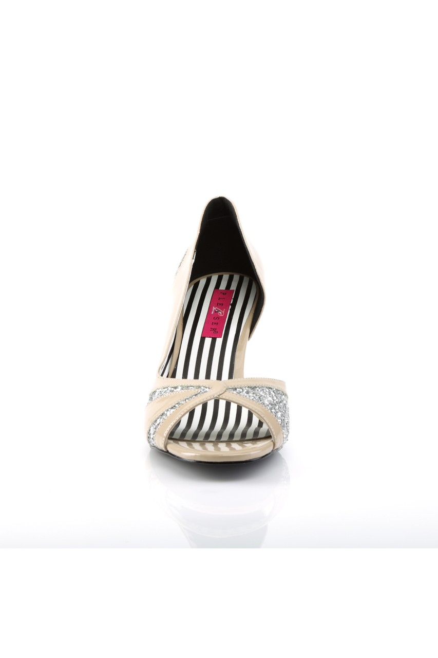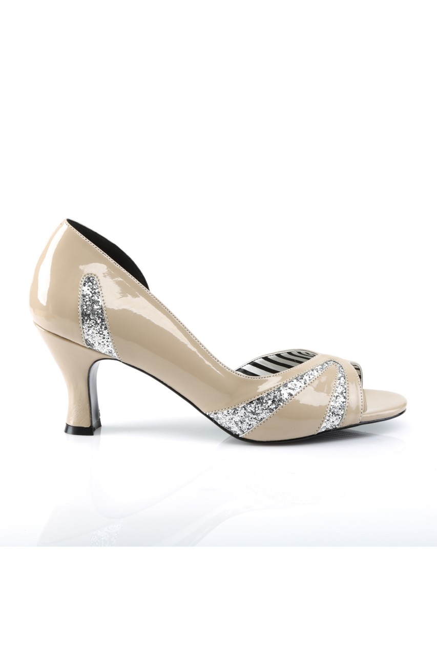 3″” (7.6cm) Heel Peep Toe D’Orsay Pump Cut with Glitter on an Asymmetric Upper