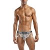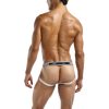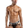 Ring jock with plush elastic leg bands attached to decorative metal rings, new plush MP logo’d waistband.