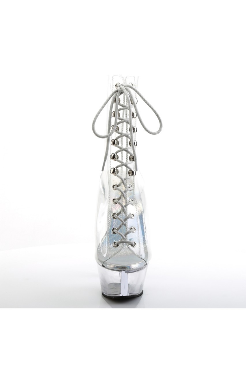 6″” (15.2cm) Heel, 1 3/4″” (4.5cm) Platform Open Toe/Heel Lace-Up Front Ankle Boot