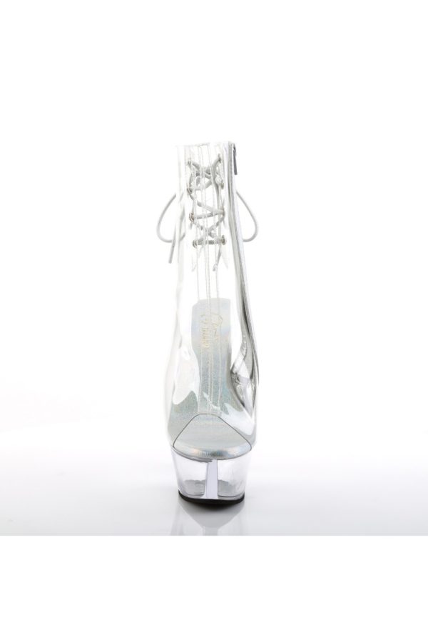 6″” (15.2cm) Heel, 1 3/4″” (4.5cm) Platform Open Toe/Heel Lace-Up Back Ankle Boot, Inner Side Zip Closure