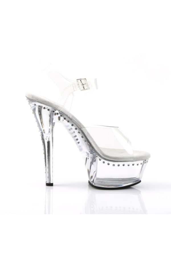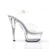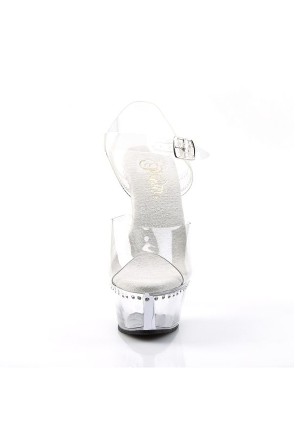 6″” (15.2cm) Heel, 1 3/4″” (4.5cm) Platform Ankle Strap Peep Toe Sandal Featuring One Line Rhinestone on Platform and Heel