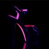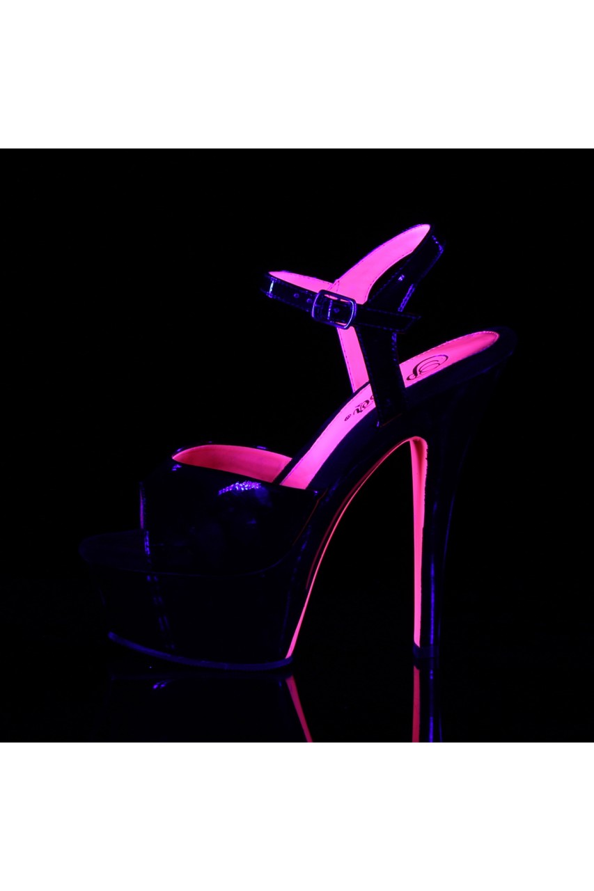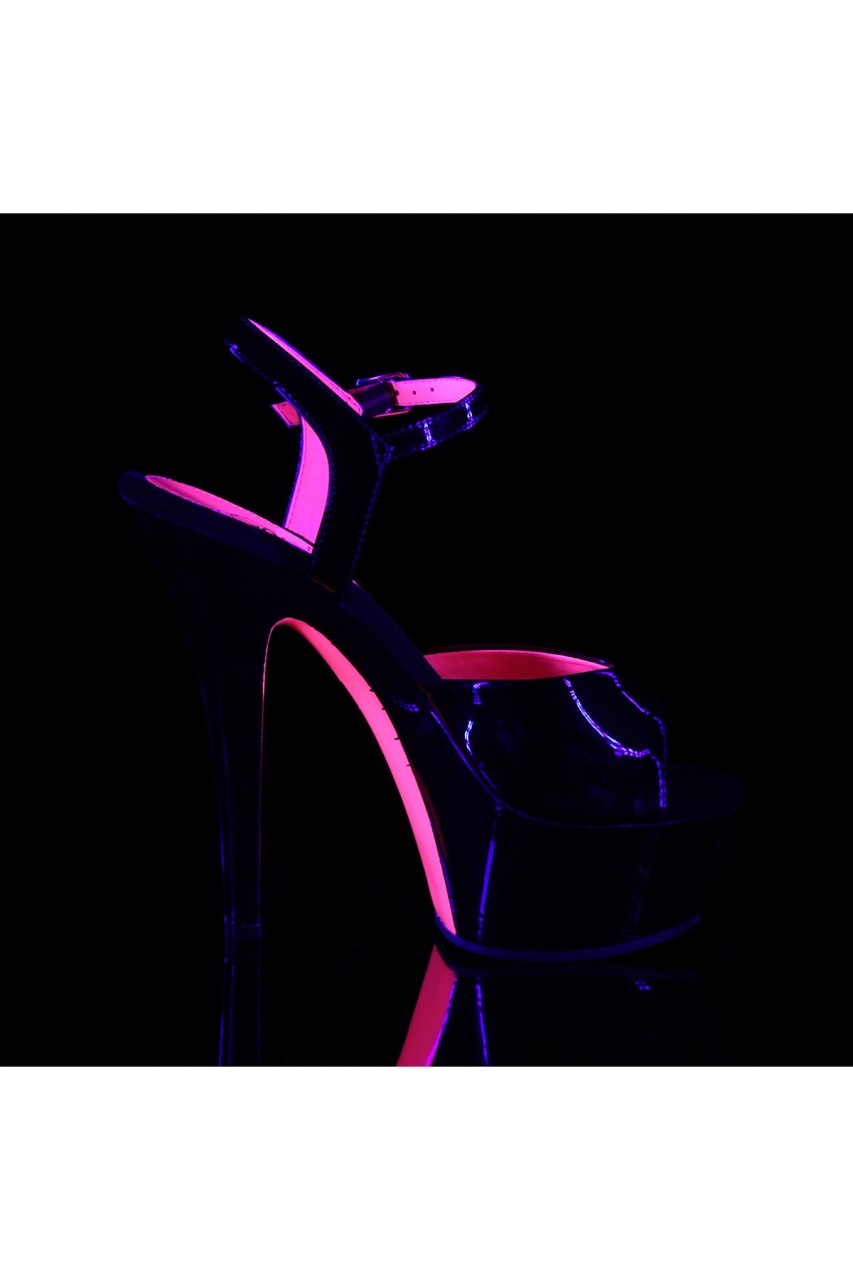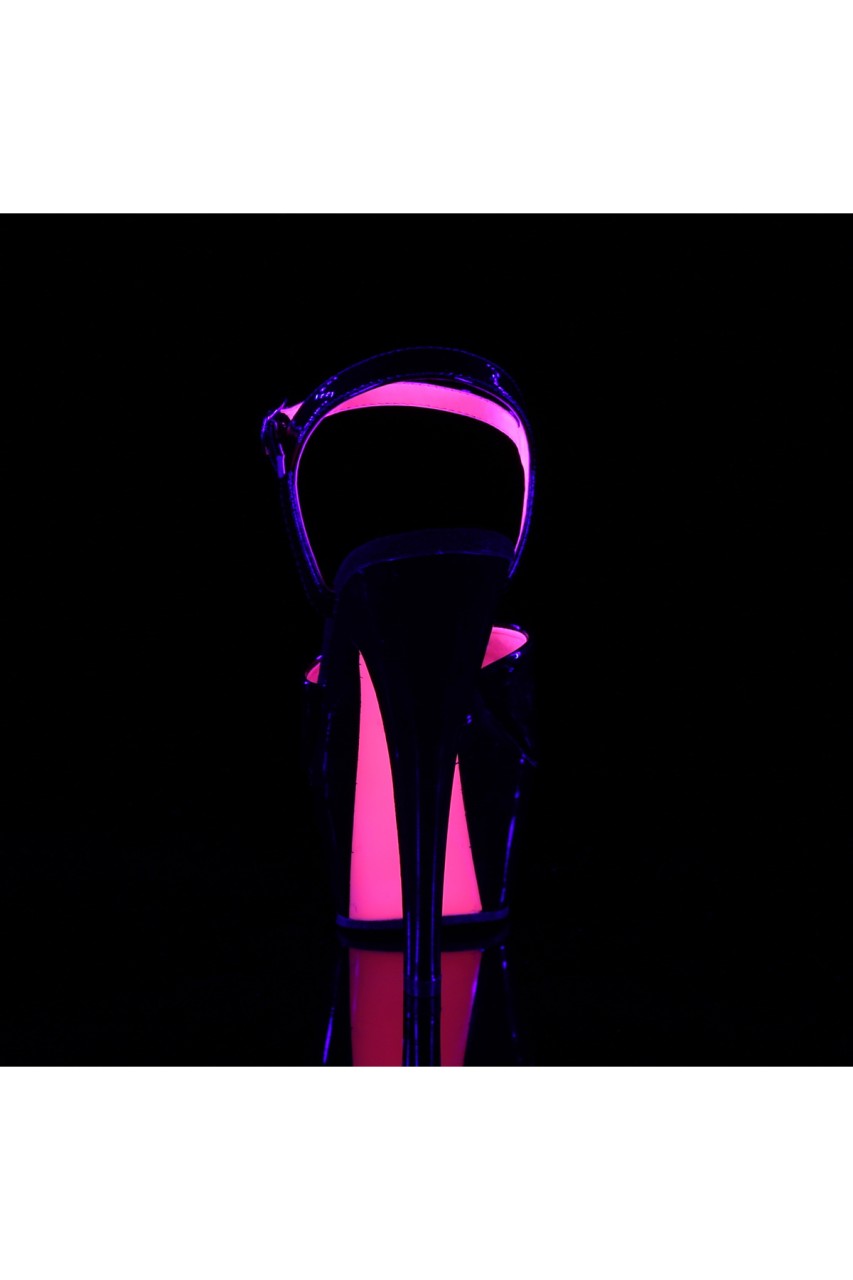 6″” (15.25cm) Heel, 1 3/4″” (4.5cm) Platform Two Tone Ankle Strap Sandal Featuring Neon Hot Pink UV Blacklight Effect
