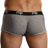 Low rise enhancer short features matching trim with enhanced pouch and plush branded waistband.