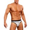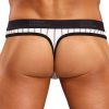 Stretch lo rise panel thong features classic pouch, thong back, decorative striped stitching and signature Male Power plush elastic waistband and trim.