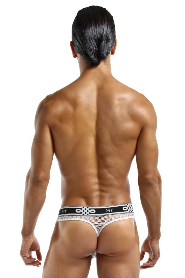 Low rise thong, low cut waist with lined pouch, new plush MP logo’d waistband.