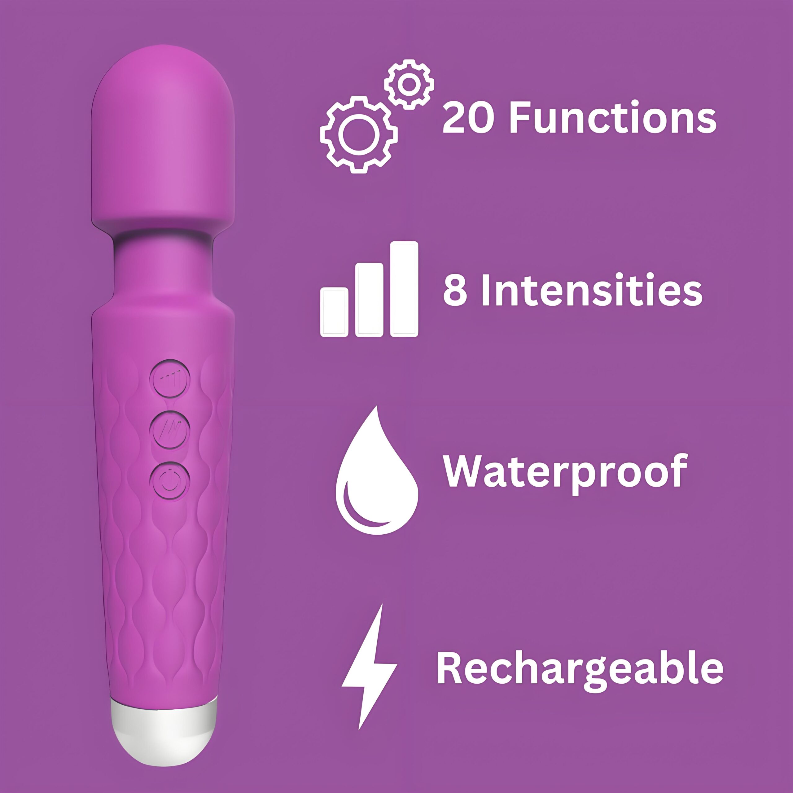 - Powerful motor with 20 soothing patterns and 8 different vibration levels