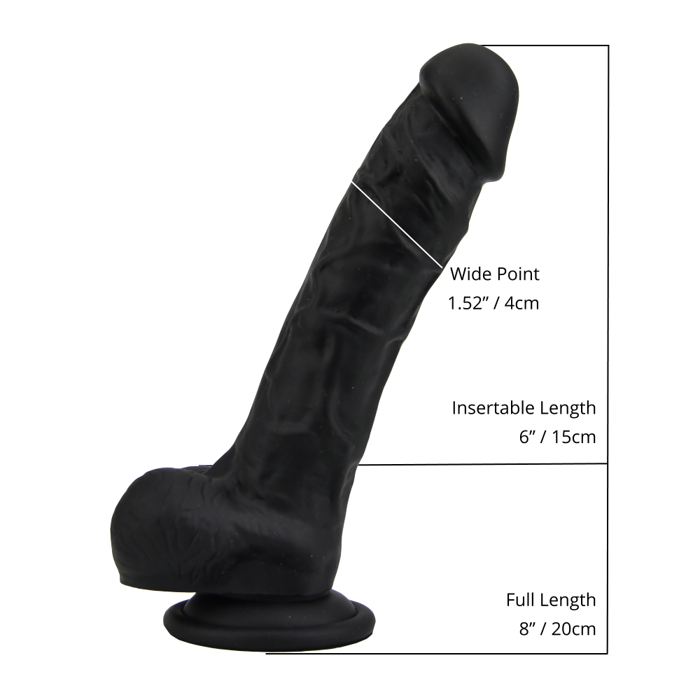 Loving Joy 8 Inch Realistic Silicone Dildo with Suction Cup and Balls Black