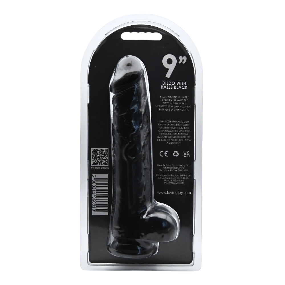The Loving Joy 9 Inch Dildo with Balls Black is a premium sex toy that offers an incredibly realistic and satisfying experience. Crafted from high-quality, body-safe materials, this dildo is perfect for those who crave a deeper and more intense sensation. This dildo features a lifelike design with a veiny shaft, pronounced head, and textured balls that deliver an incredible level of stimulation. The generous length and girth of this toy offer a full feeling that will leave you feeling deeply satisfied, while the realistic texture adds an extra layer of pleasure. One of the key features of this dildo is its strong suction cup base, which allows you to attach it to any flat surface for hands-free fun. You can explore your fantasies without worrying about holding the dildo in place, as it stays firmly in position throughout your playtime. Product features: