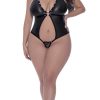 From the Lust Fetish collection by Magic Silk, this style includes: an Open Crotch Teddy with nickel plated rings, grommets and studs, elastic stretch lacing, stretch elastic halter neck with clip closure for comfort. 85% Polyester 15% Spandex
