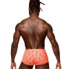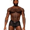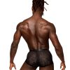 From the Rude Awakening collection by Male Power, the Cheeky Cutout Short features very high cut legs with a cutout window above the pouch. Color coordinating satin straps and gold ringed waistband.