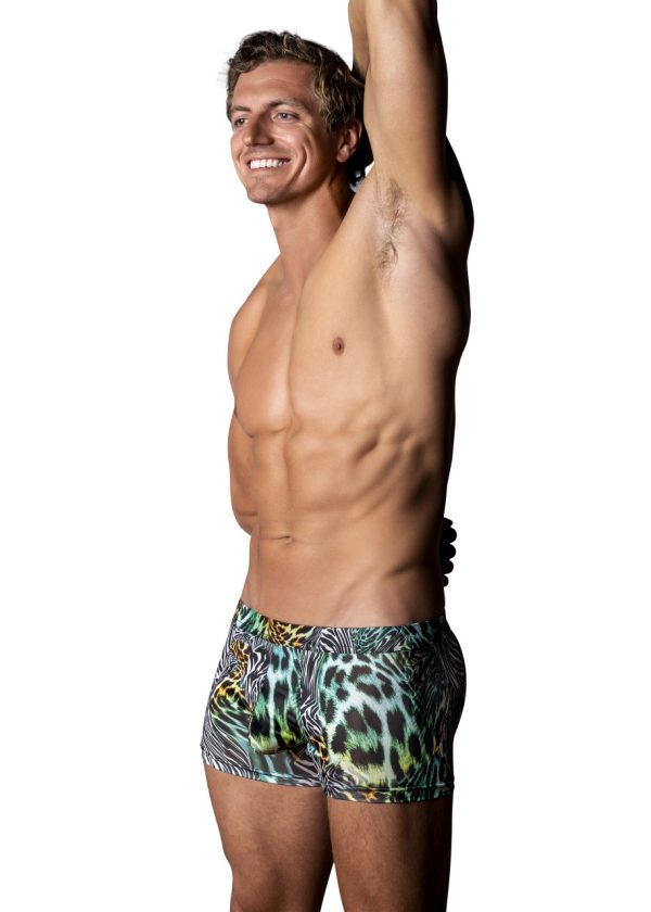 From the Go Wild collection by Male Power, the Uplift Mini Short has a low cut waist, high cut legs and a contoured uplift pouch for a provocative boost up front. Covered elastic waistband.