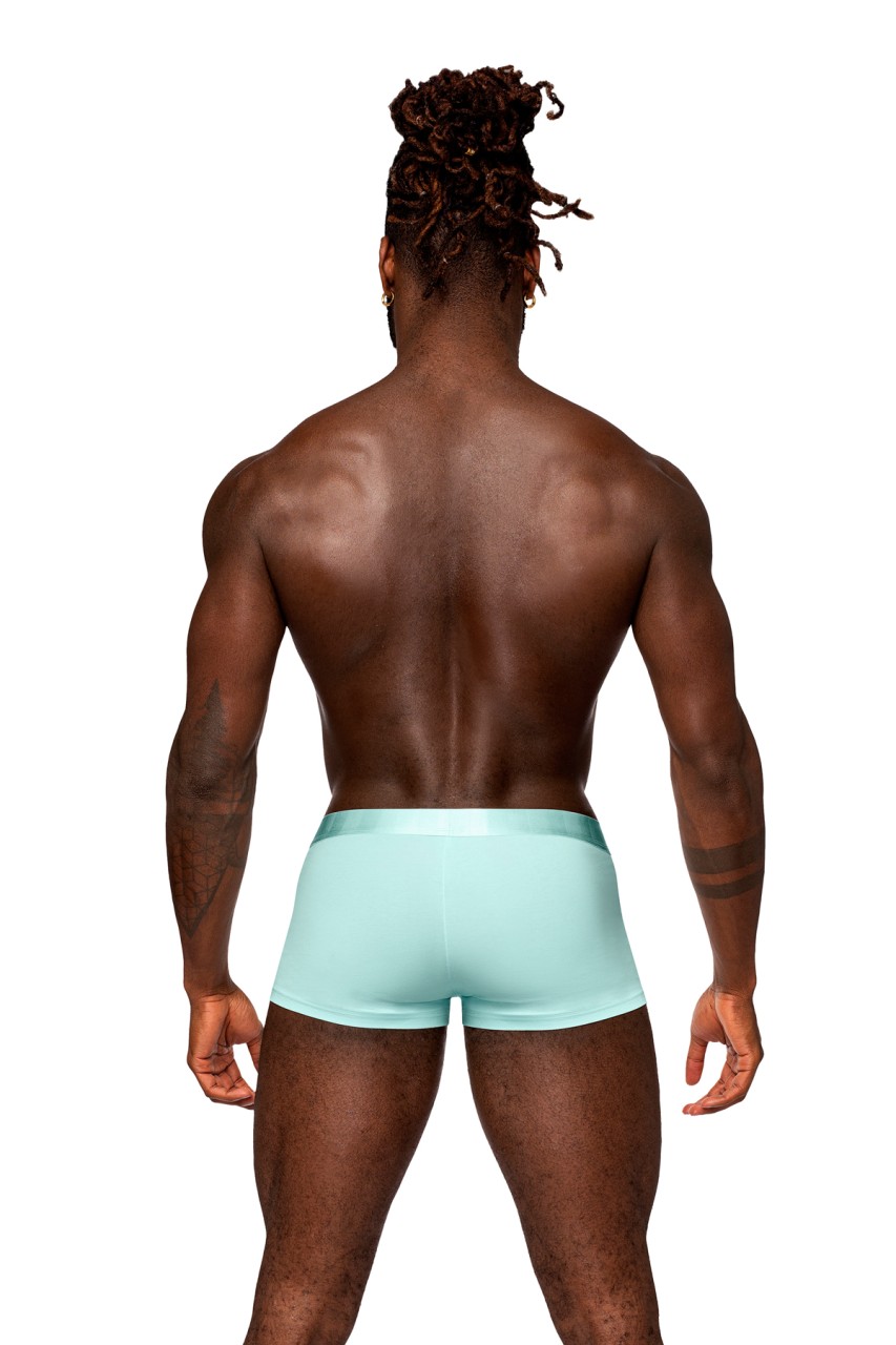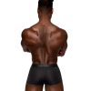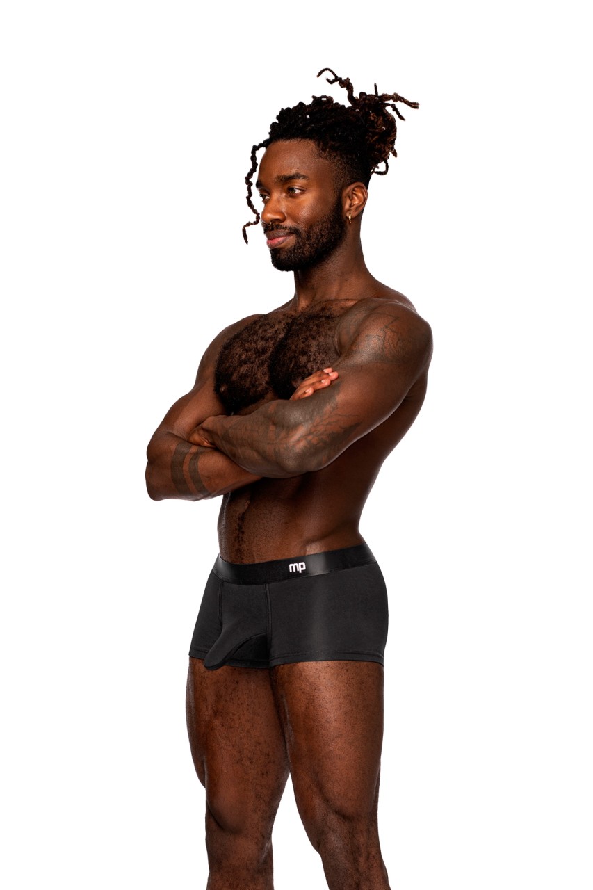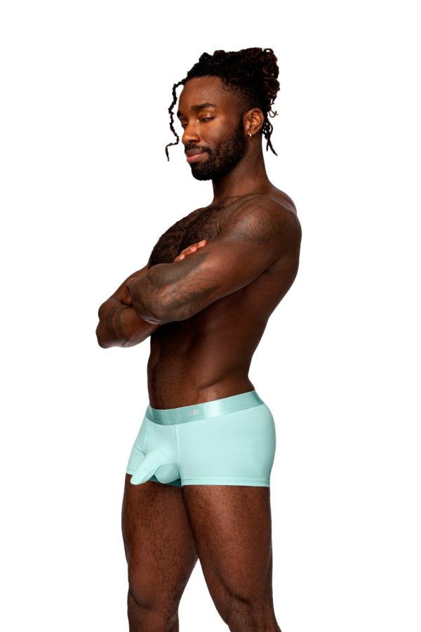 From the Easy Breezy collection by Male Power, the Mini Short With Sleeve features a low cut waist and high cut legs. The sleeved pouch boosts and defines. Satin finished elastic waistband with stamped rubberized logo.