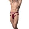 From the Lucifer collection by Male Power, the Strappy Jock consists of a full lace pouch secured by plush elastic strapping, criss crossed in front and butt boosting in back.
