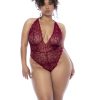 The most flattering bodysuit in a cotemporary wavy lace. Features a plunge neckline, open back design and adjustable crotch fastening.