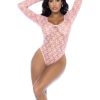 This long-sleeved bodysuit exudes romance and charm, crafted from floral lace and featuring a hook-and-eye crotch closure for a perfect fit.