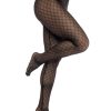 Diamond mesh pantyhose with elastic band at waist.