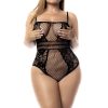 Shine bright and celebrate your curves with this stunning plus-size long-sleeved, crotchless bodystocking, adorned with sparkling diamante accents! Designed to hug your figure in all the right places, this sheer, stretchy piece combines elegance with a touch of daring. The open crotch detail adds a playful edge, while the long sleeves bring a hint of sophistication. Perfect for a night when you want to feel sexy, confident, and completely unforgettable, this bodystocking is made to embrace your curves and let you sparkle! Please note the thong is not included.
