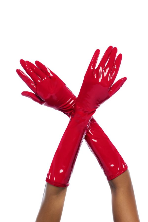 Elevate any outfit with these vinyl gloves. Includes drawstring at the top for an adjustable fit.