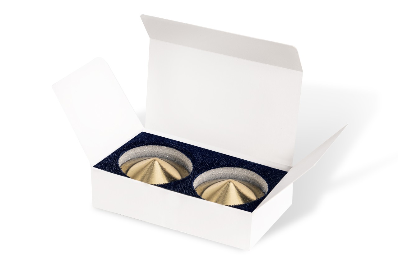A special luxury item that will add a wow factor to any lingerie piece you wear. Gold plated conical liners with adhesive.