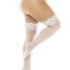 Thigh high stockings with lace band and internal silicone to prevent slipping.