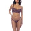 Elegance and sensuality make up this three-piece set in embroidered mesh. Includes underwire top with adjustable straps and adjustable back fastening, garter belt and matching thong.