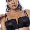 Two-piece set with wet look and sheer mesh contrasts. Includes top with adjustable straps and matching panty.