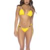 A timeless two-piece swimsuit with a tropical flair, featuring a triangle top with tortoise bead details and a matching side-tie thong bottom.