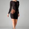 A sexy mini dress made from super soft stretch fabric. Open back detail with satin ribbon top tie fastening. The sides have a cut out detail with transparent tulle. Matching thong is included. A subtle take on the little black dress! Great for clubbing. This item arrives packaged in Me Seduce Box.